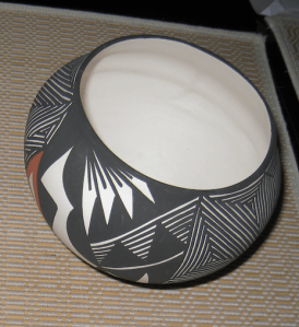 Rather than flirtation, I saw it as a quiet affirmation of the research my husband had just delivered that afternoon at a conference. It hadn’t gone over well with a lot of people. A male elder felt compelled to speak right after my husband finished his presentation. He made it clear my husband was an outsider, and claiming the predominately female makers of Hopi pots might bring something of themselves to their painted designs was abhorrent to him. The designs were traditional, many deemed sacred, although women weren’t privy to their sacred meanings. Rather than depicting the artists as taking down spiritual dictation and accidentally creating a sacred vessel on occasion, my husband noted what distinguished one artist from another within the visual template she was given.